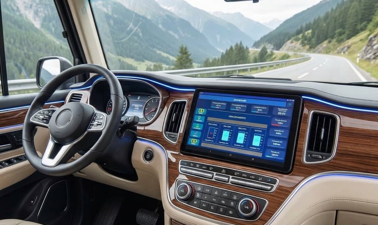 Desenvolvemos painéis inteligentes, sistemas de monitoramento e controle de equipamentos que permitem ao usuário acompanhar em tempo real o funcionamento do motorhome, como níveis de reservatórios, consumo de energia, iluminação, bombas e outros dispositivos essenciais.